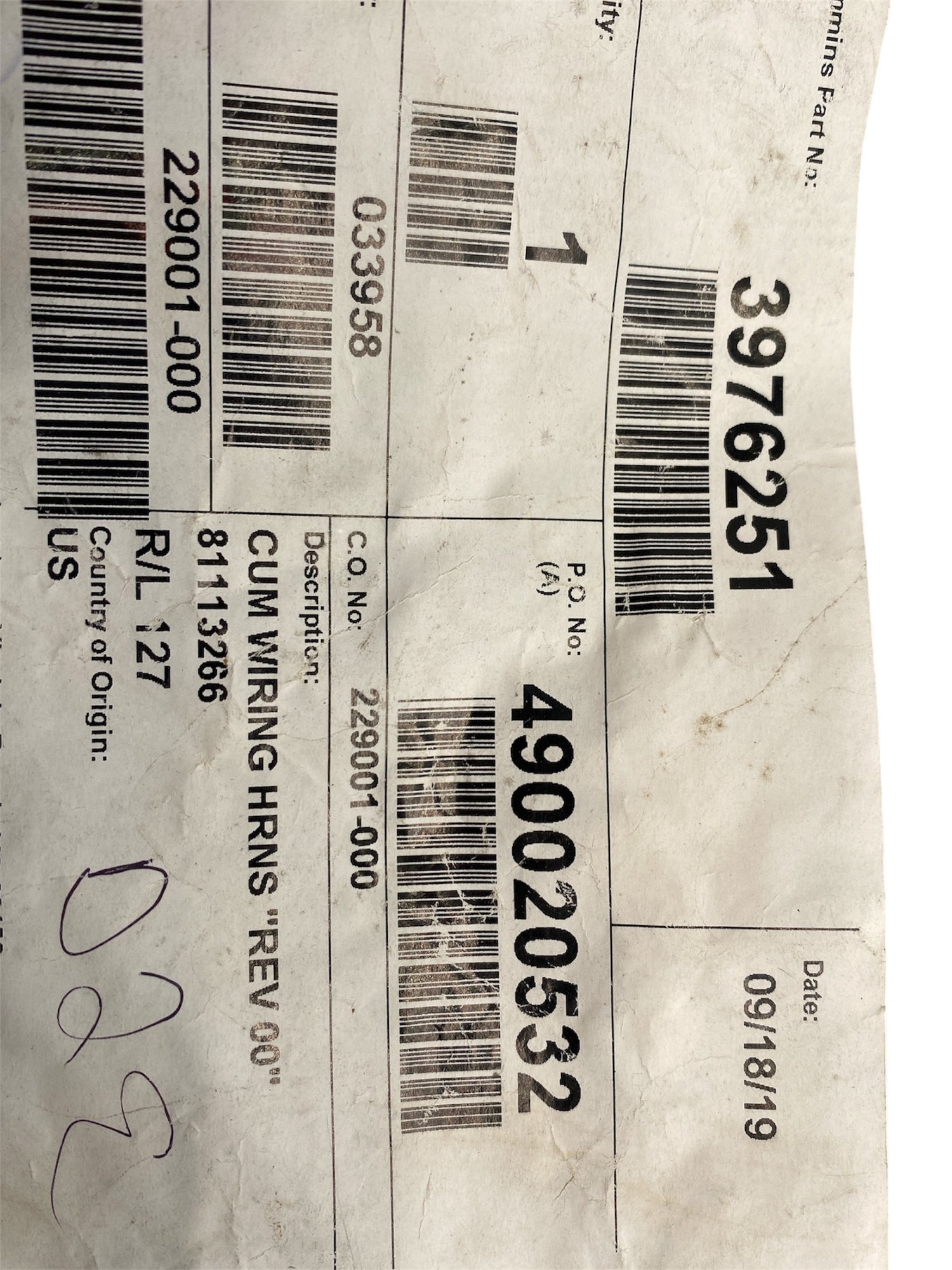 Cummins 3976251 Wiring Harness “Rev 00” – OEM Marine Harness 81113266 is backordered and will ship as soon as it is back in stock.